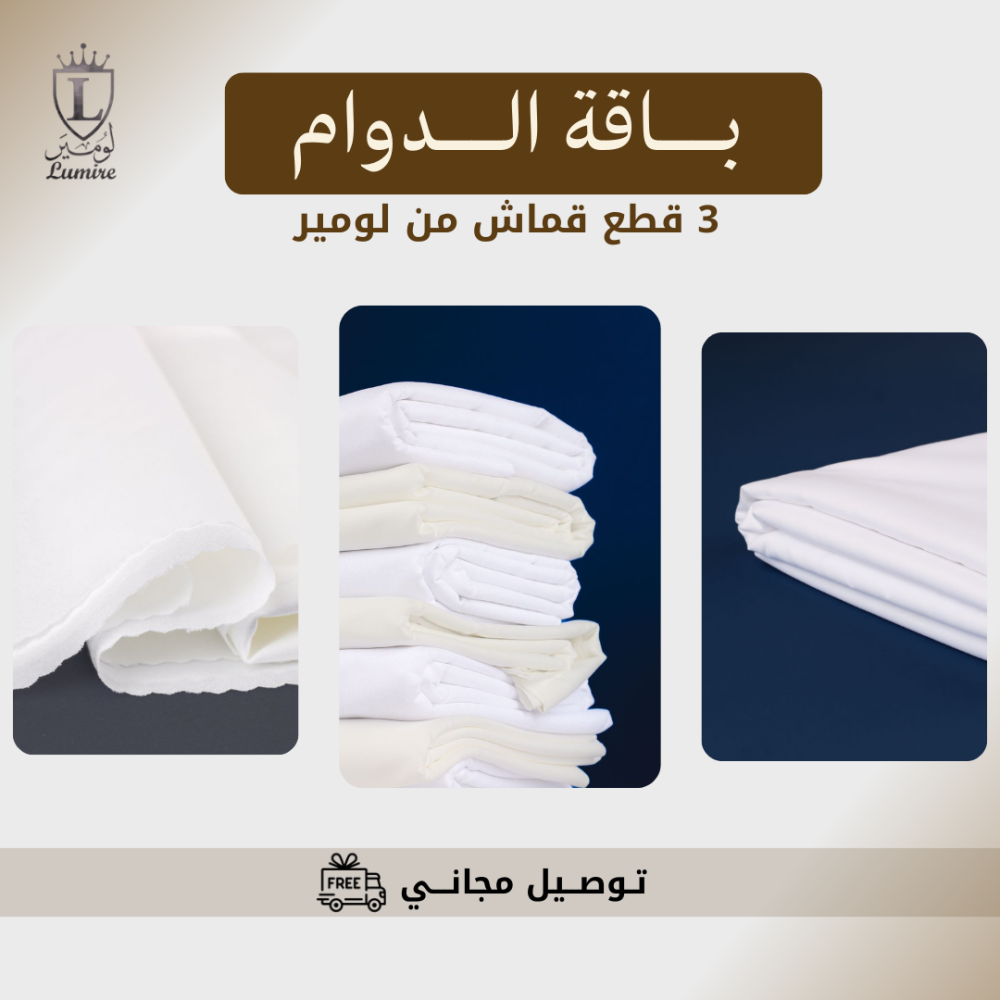 3 قطع قماش من لومير سادة وسط تمتاز بتصميم فريد بخيوط رفيعه ومتداخلة
